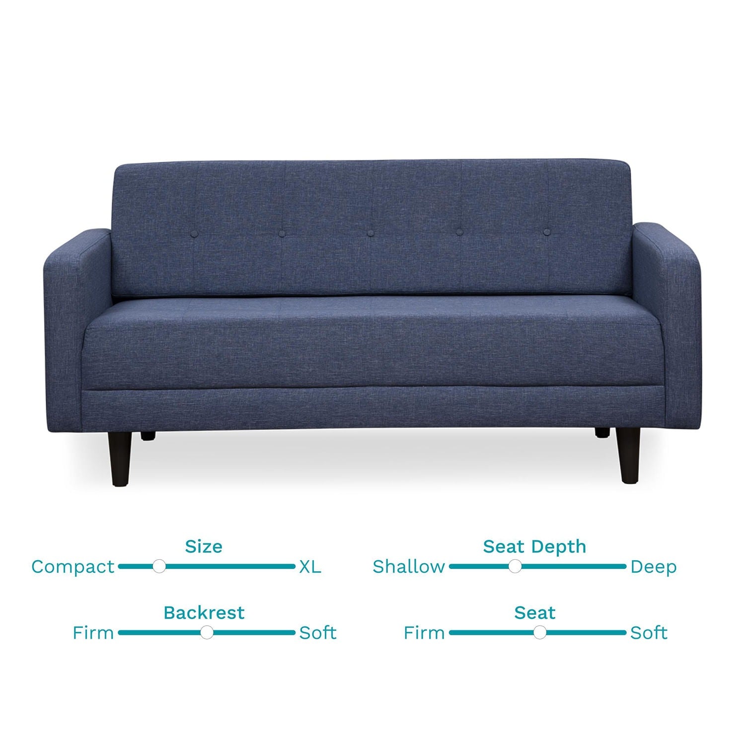 Enhance your living space with the Fabric 3 Seater Sofa in Grace Denim Color, designed for comfort and timeless elegance. Upholstered in premium fabric, this sofa features a button-tufted backrest and a modern minimalist silhouette that blends perfectly with any décor.