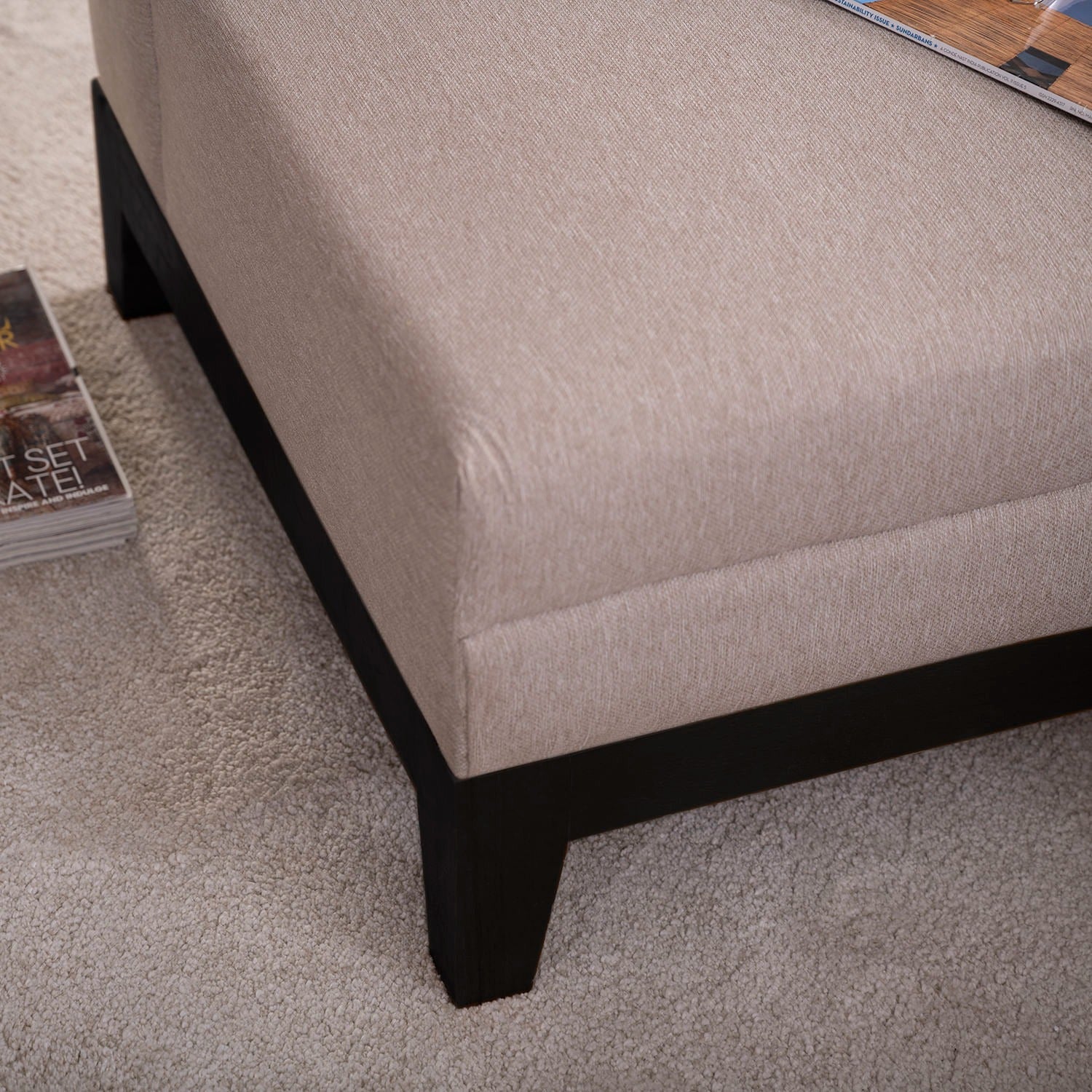Upholstery: Durable beige fabric that is soft to the touch and easy to maintain.