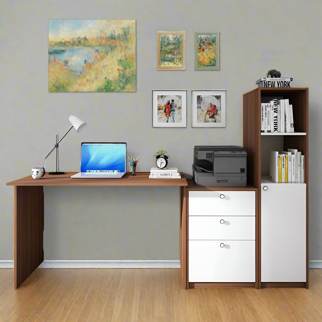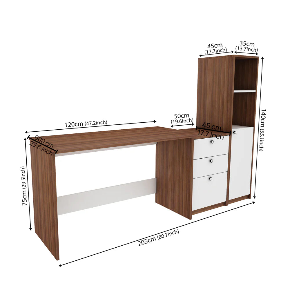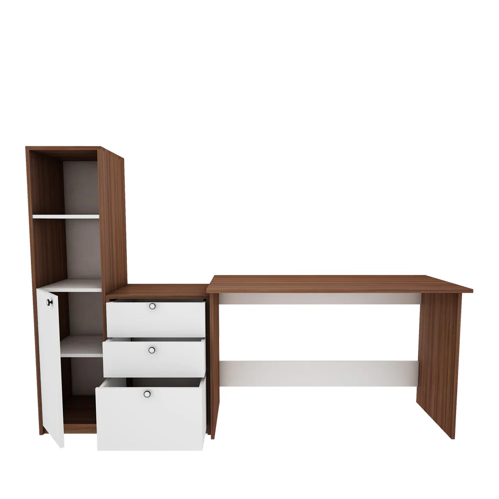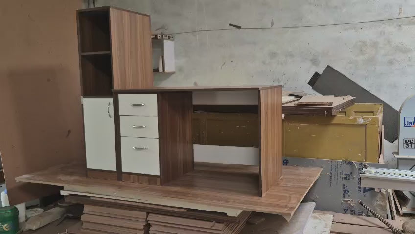 Elevate your workspace with the NovaSmart Study Desk by OmkarWood™, a perfect fusion of modern aesthetics and practical functionality. Crafted from premium engineered wood with a rich walnut and white finish, this multifunctional desk offers a spacious worktop ideal for studying or working on a laptop.