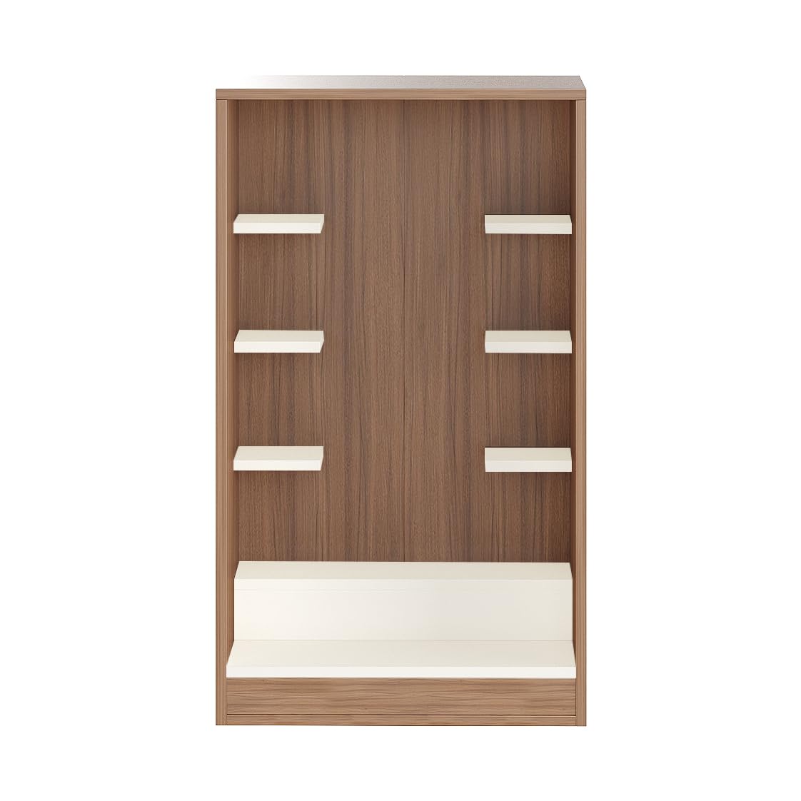 Material: Made from premium engineered wood with a natural wood finish and smooth matte white shelves.